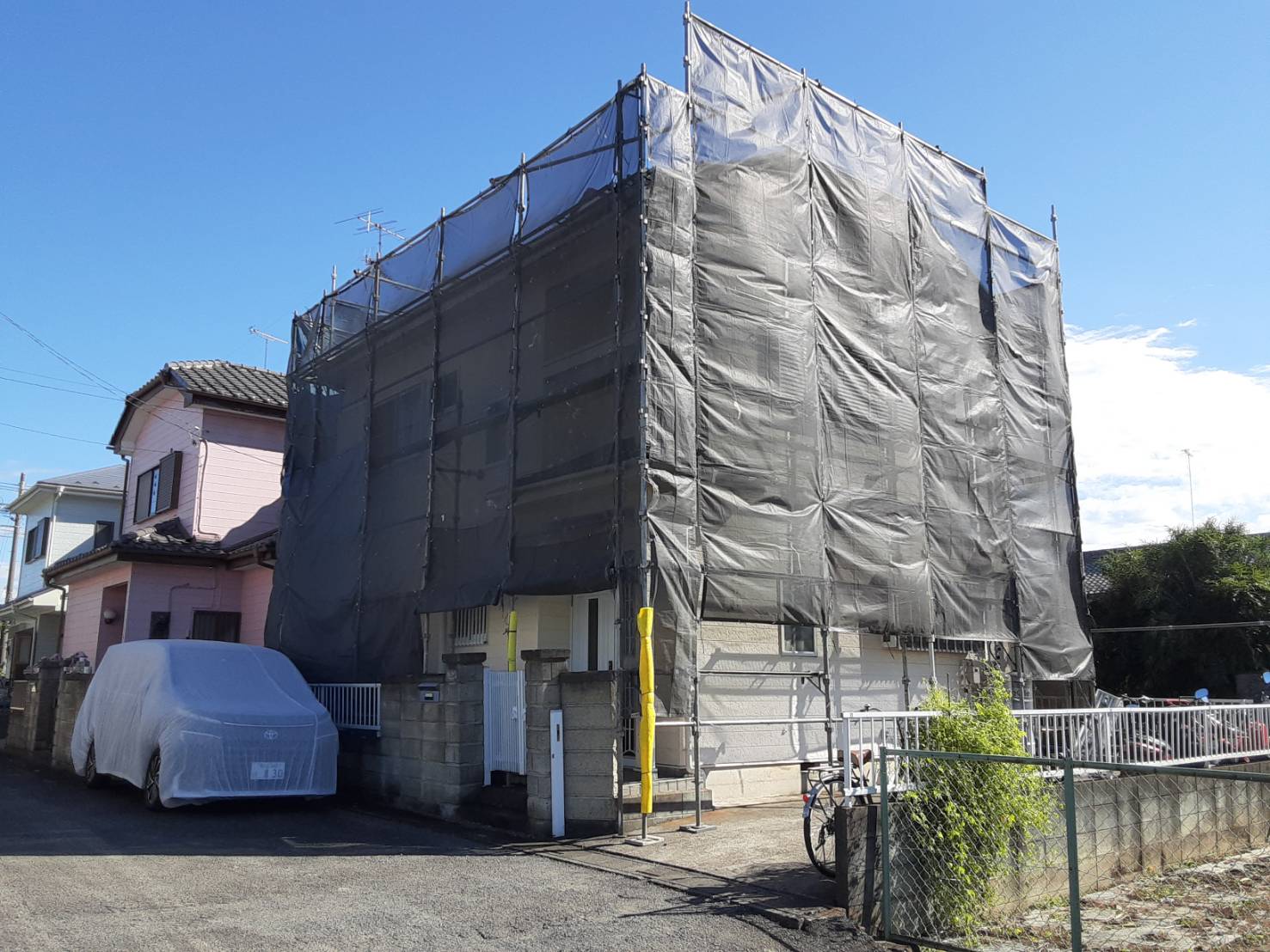 2025年8月28日 行田市 屋根外壁塗装工事本日より行田市にて外壁塗装工事を着工させて頂いております。 足場の設置工事でしたが あまりの暑さに作業が思った様に進みませんでしたが何とか完了致しました。 お仕...